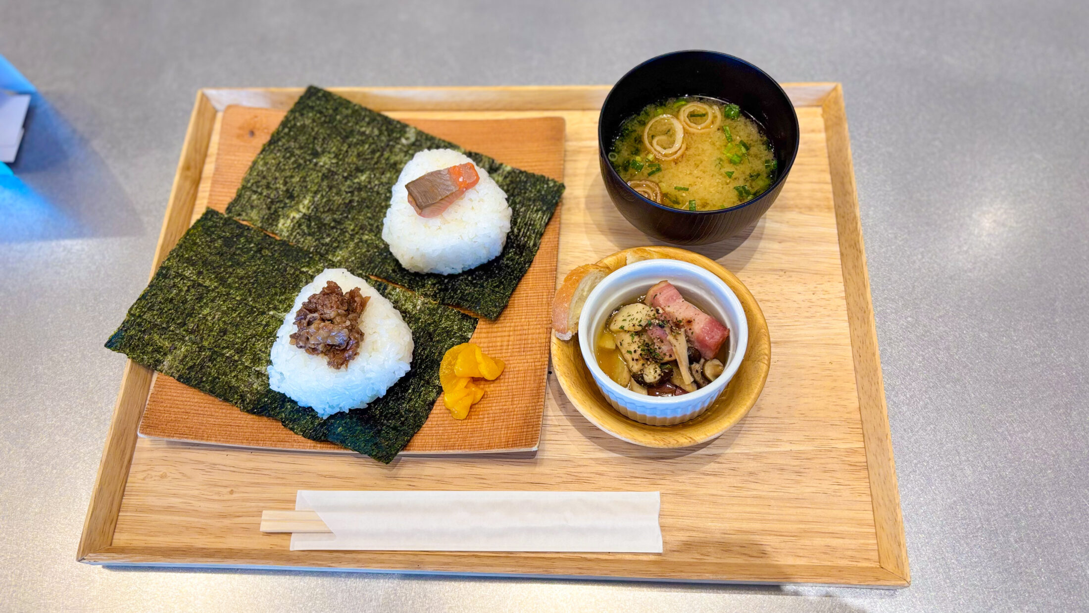 おにぎりやお惣菜を自分で選択するメニューです。