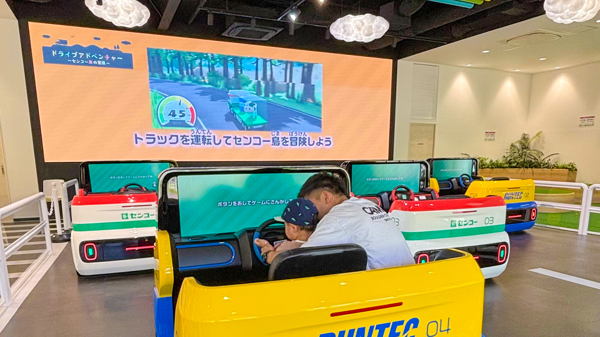 画面を見ながらコインを集めたり、悪者と戦うゲーム感覚の室内アトラクションです!