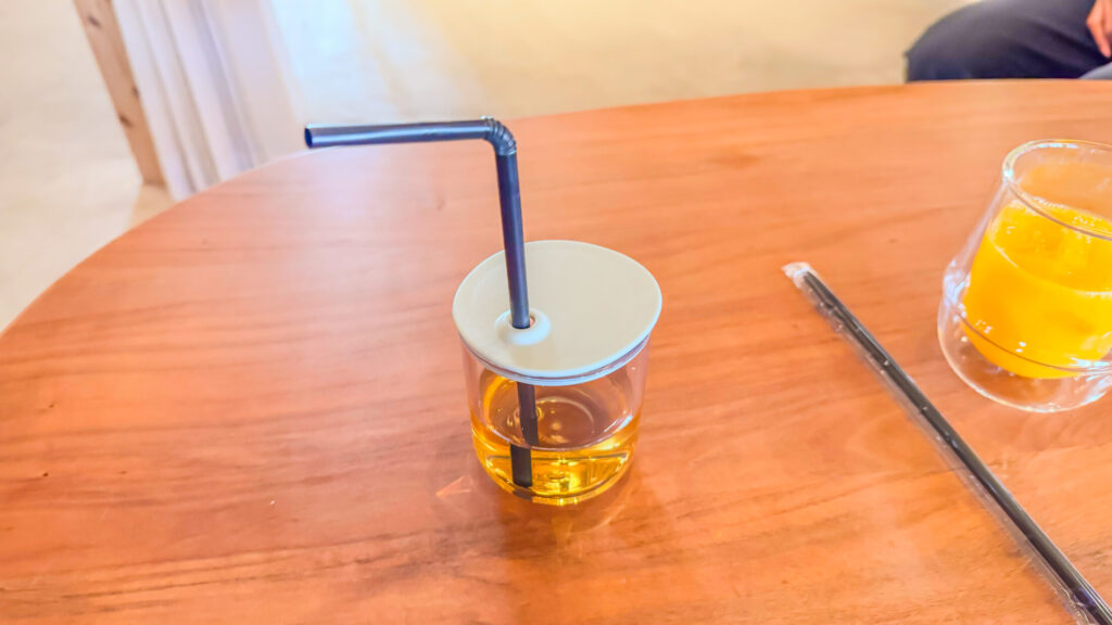 ▲ストローとフタ付きコップ