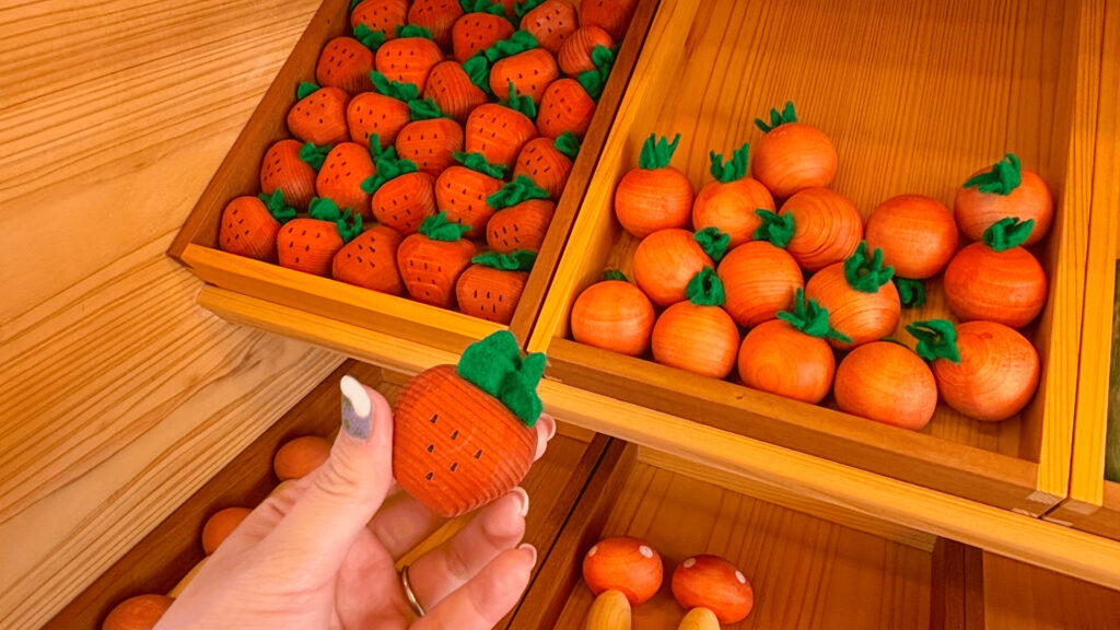 子どもは絵本やお絵かき、木のおもちゃで遊ぶことができます。