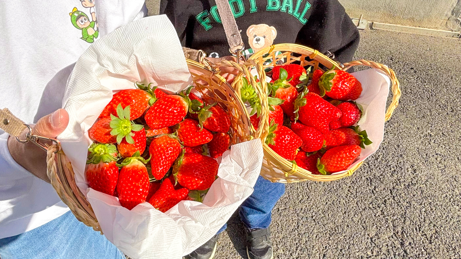 お洒落なカゴでいちご狩りをしている姿は思わず写真を撮ってしまいます。