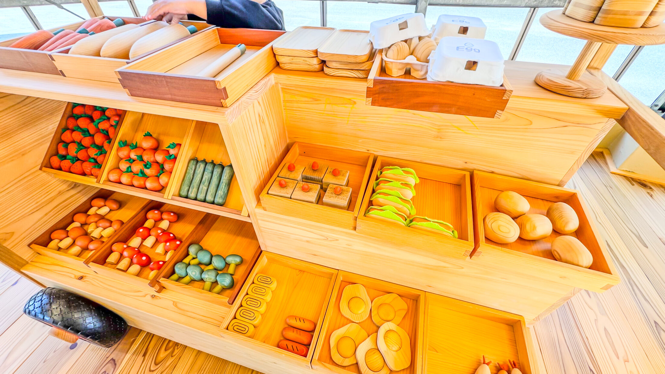 子どもは絵本やお絵かき、木のおもちゃで遊ぶことができます。