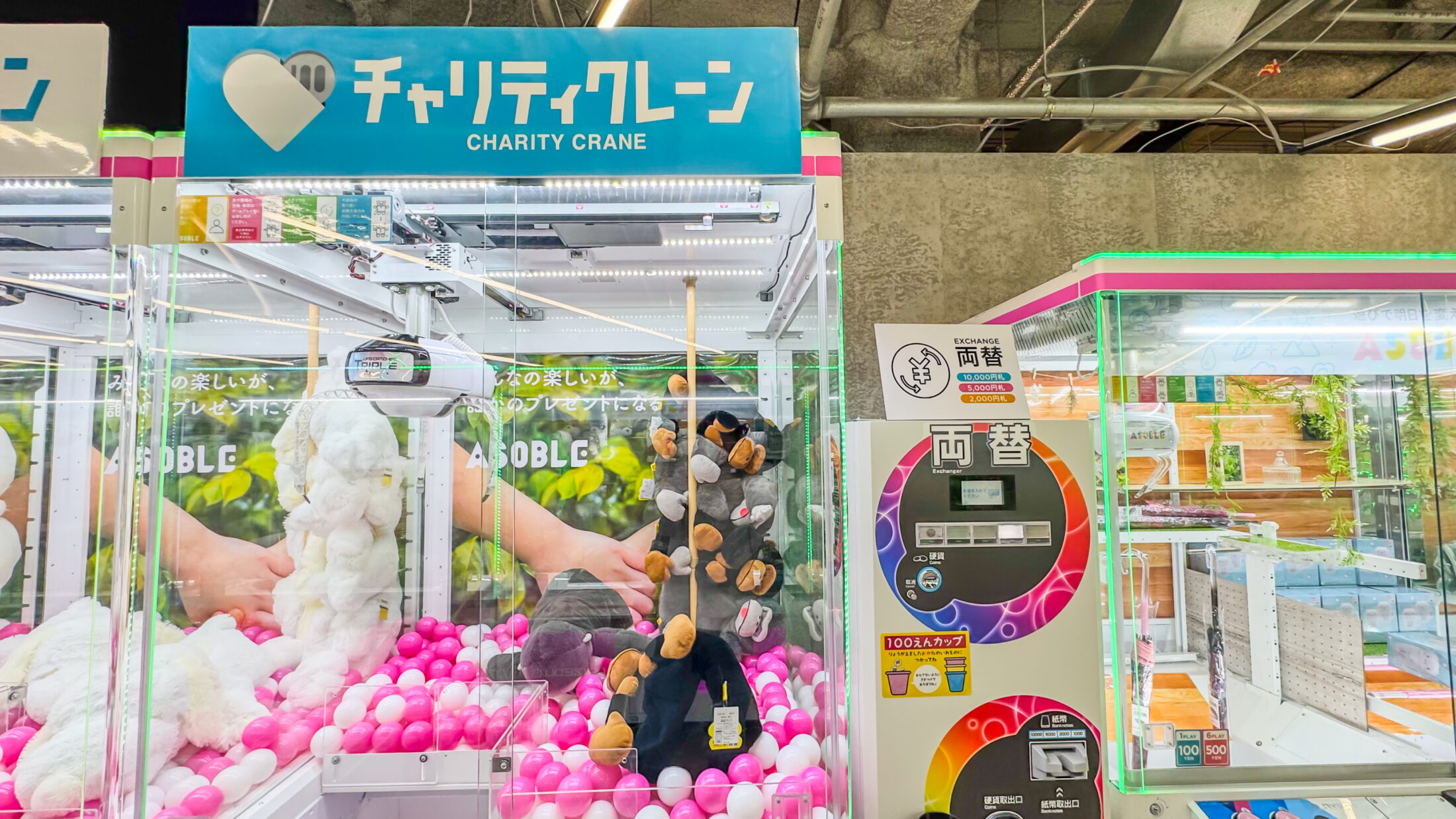 チャリティクレーンは売上の一部が地域の子どもに寄付される取り組みが行われています。