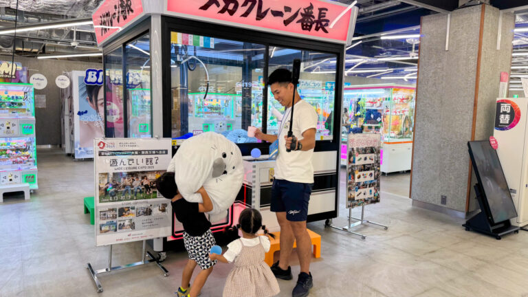 注目は全長2.4メートルの巨大クレーンゲーム(1play500円)