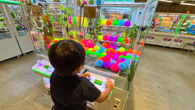 子どもが操作しやすい背の低いクレーンゲームもたくさんありました。