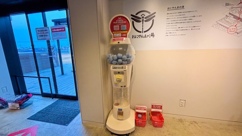 タオルがない場合は足湯から室内に入ってすぐの場所にタオル自販機(?)が設置されていました。